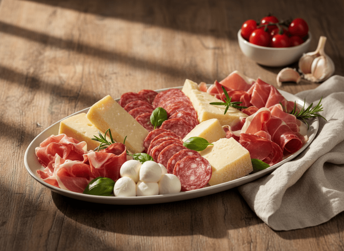 Impress your guests with a vibrant and delicious antipasto platter, a classic Italian spread featuring a curated selection of cured meats, artisanal cheeses, marinated vegetables, and crusty bread. Perfect for entertaining or a sophisticated appetizer.